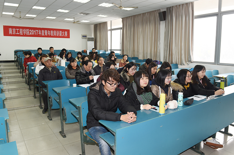 1月6日,我校2017年度青年教师讲课大赛总决赛在教学楼西馆C102举行。经过各教学单位初赛、评审委员会审核选拔推荐的25名青年教师参加了角逐。郑锋副院长,教务处、教学质量管理办公室、人事处和校工会负责人来到现场观摩比赛。除了校内专家外,本次比赛还特邀南京大学吕林海、王自强,东南大学贾民平、周雨青四位专家担任评委。