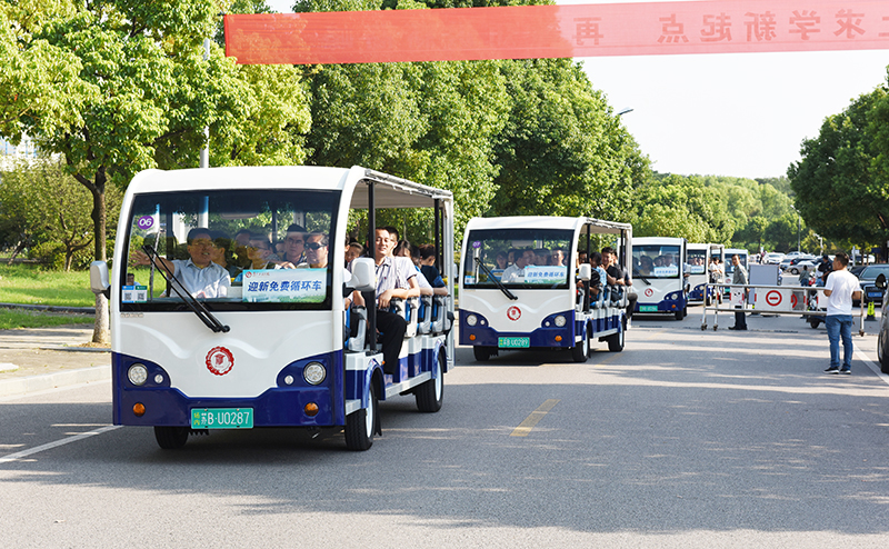 今年,校内小公交已成为学生们的“新宠”。校园很大,从报到点到宿舍、食堂等地要走不少路。报到当天小公交的免费接送真正实现了校外校内交通的“无缝连接”,被同学们亲切地称为“出行利器”。