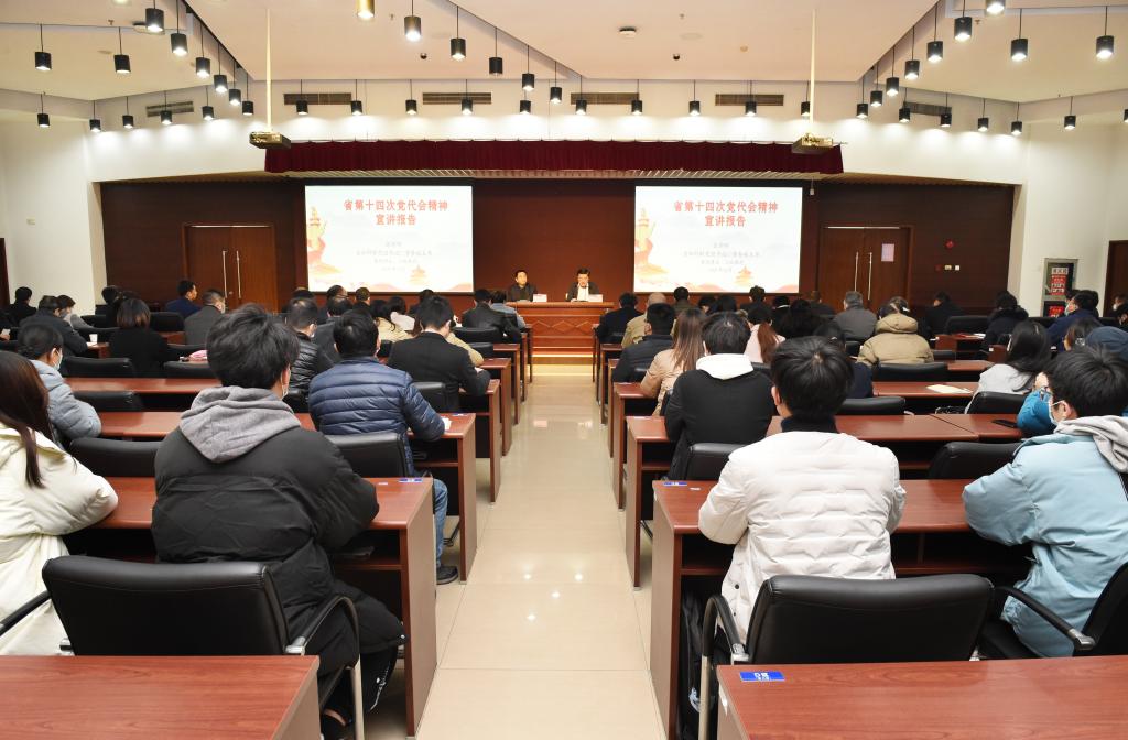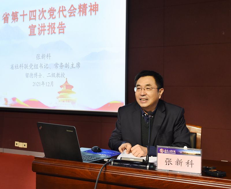 根据省委统一部署,12月24日下午,我校在至勤楼·行政中心多功能厅举行学习贯彻省第十四次党代会精神省委宣讲团报告会,省委宣讲团成员,省社科联党组书记、常务副主席张新科作宣讲报告。报告会由我校党委书记史国君主持。全体在校校领导、中层干部、党员师生代表等200余人聆听报告。