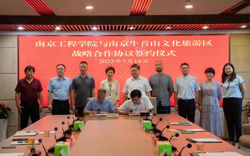 7月18日下午,我校与南京牛首山文化旅游区签订战略合作协议,签约仪式在牛首山文化旅游区管委会举行。我校党委书记史国君,党委常委、副院长朱晓春;牛首山文旅区管委会党工委书记贝淑芳,管委会主任薛松,副主任屠建、汤箬梅出席签约仪式。