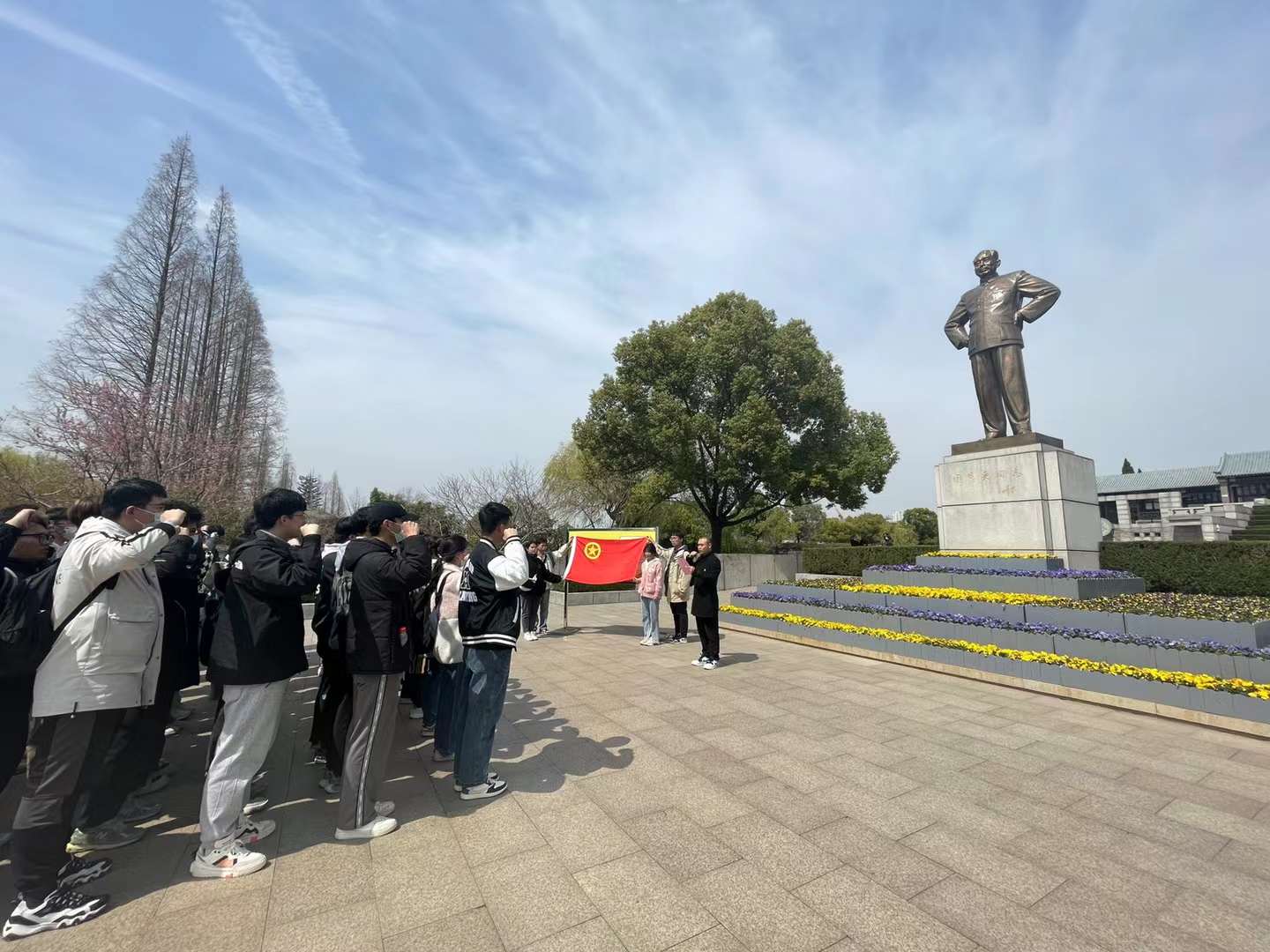 春天的周恩来纪念馆,阳光洋溢,海棠花竞,络绎不绝的瞻仰者们在树下驻足、在周恩来铜像前凝思。在史国君书记的带领下,同学们怀着无比崇敬的心情来到周恩来汉白玉雕像前敬献花篮,史书记上前整理花篮缎带,全体师生静默肃立,鞠躬致敬,深切缅怀周总理的丰功伟绩。跟着讲解员的脚步,大家走进陈列馆,一个个展厅、一件件旧物、一张张照片、一串串故事,如同时空对话,向世人述说着周总理的光辉一生,从少年树立志向,意气风发;到壮年展露风采,挥斥方遒;再到暮年指点江山,鞠躬尽瘁。师生们边看边感悟着周总理传奇而伟大的一生,边想边探寻着他“为中华之崛起而读书”的奋发根源和“为中华之明日而革命”的信念出处。参观过程中史国君书记勉励大家要以周恩来为楷模,要承周恩来“为中华之崛起而读书”之志,矢志不移听党话、跟党走,奋发图强,用奋斗的青春勇担时代使命。