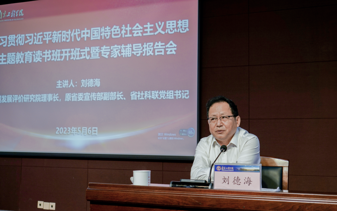 刘德海研究员紧扣党的二十大报告原文,以“阔步迈上新征程的政治宣言和行动纲领”为主题作辅导报告。他从“十年变革:彪炳五大史册的里程碑”“思想旗帜:开辟马克思主义中国化时代化新境界”“中心任务:以中国式现代化全面推进中华民族伟大复兴”“战略部署:开局起步的行动纲领”和“关键在党:以党的自我革命引领社会革命”5个方面,系统深入解读党的二十大精神。他指出,要充分认识学习宣传贯彻党的二十大精神的重大意义,进一步深刻领悟“两个确立”的决定性意义,自觉用习近平新时代中国特色社会主义思想凝心铸魂,坚持学思用贯通、知信行统一,做到信念过硬、政治过硬、责任过硬、能力过硬、作风过硬,坚定不移以中国式现代化推进现代化建设新实践,为全面建设社会主义现代化国家、全面推进中华民族伟大复兴而团结奋斗。报告主题鲜明、内涵丰富,具有很强的思想性、理论性、针对性,为广大师生干部学懂弄通习近平新时代中国特色社会主义思想这一当代中国马克思主义、二十一世纪马克思主义,扎实有效开展主题教育提供了有力指导。