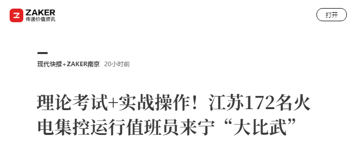 《现代快报》、《Zaker》:理论考试+实战操作!江苏172名火电集控运行值班员来宁“大比武”