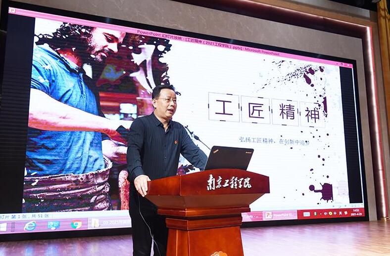 前来为师生们宣讲的是南京港机重工制造有限公司技术总监、全国劳动模范沙夕兰;国网江苏省电力有限公司电力科学研究院正高级技师、全国劳动模范、江苏大工匠朱洪斌;国家级技能大师、江苏大工匠、无锡工艺职业技术学院教授张宏文。