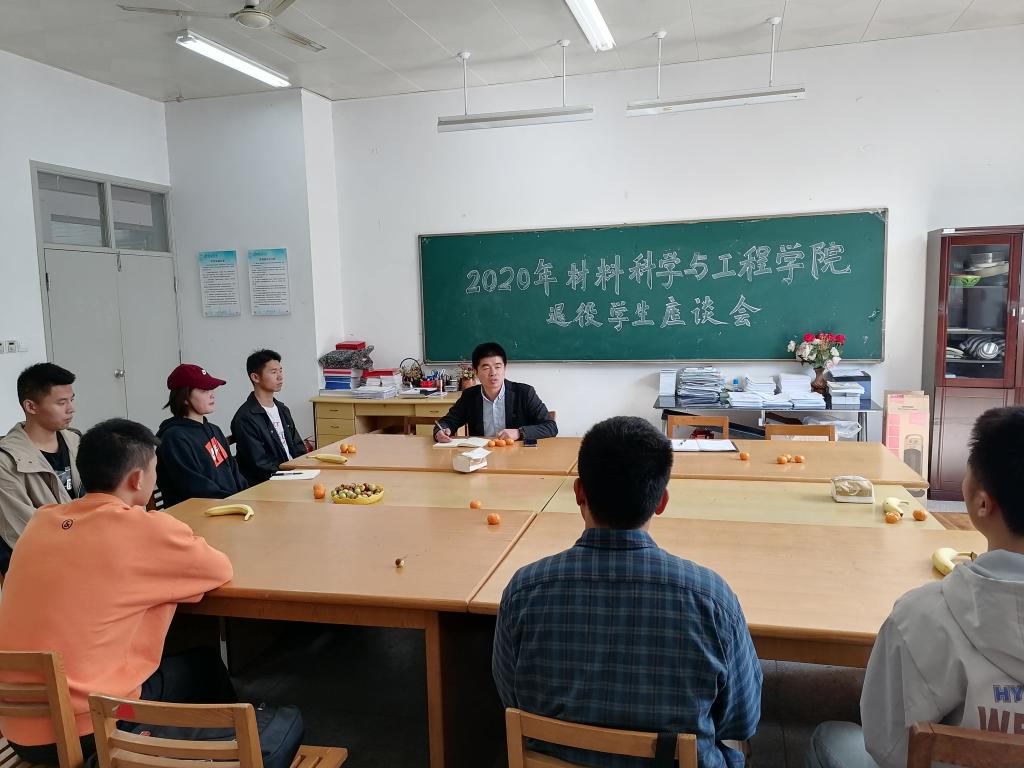 10月23日,材料科学与凯发组织召开了2020年退伍复学学生座谈会。学院学生工作负责人、分管人武工作老师、往届退伍复学学生代表、2020年退伍复学学生参加了座谈会。