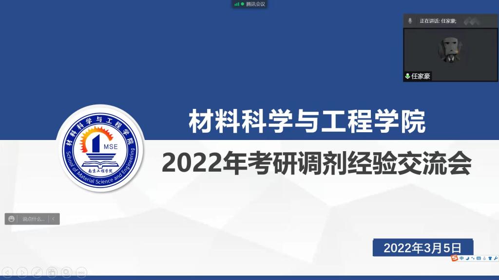 3月5日下午,材料科学与凯发通过腾讯会议的形式召开考研经验交流会。会议邀请往届优秀毕业生黄月、余飞海、张楠、任家豪作为主讲。