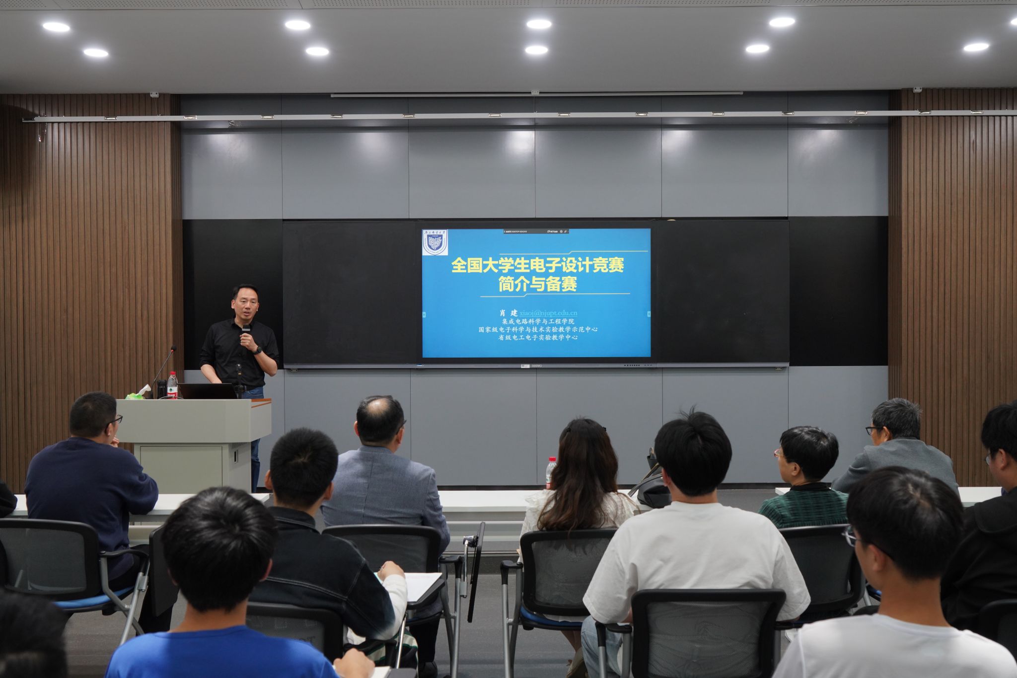 为了进一步增强学生创新能力,帮助学生了解学科竞赛体制,5月9日晚,机械凯发于工程实践中心6B211举办了科创专题讲座。讲座特邀南京邮电大学集成电路科学与凯发副院长、国家级电子科学与技术实验教学示范中心副主任、国家级线下一流课程负责人肖建教授主讲,由该院院长黄家才主持。党委副书记印书范及学院师生100余人参加活动。