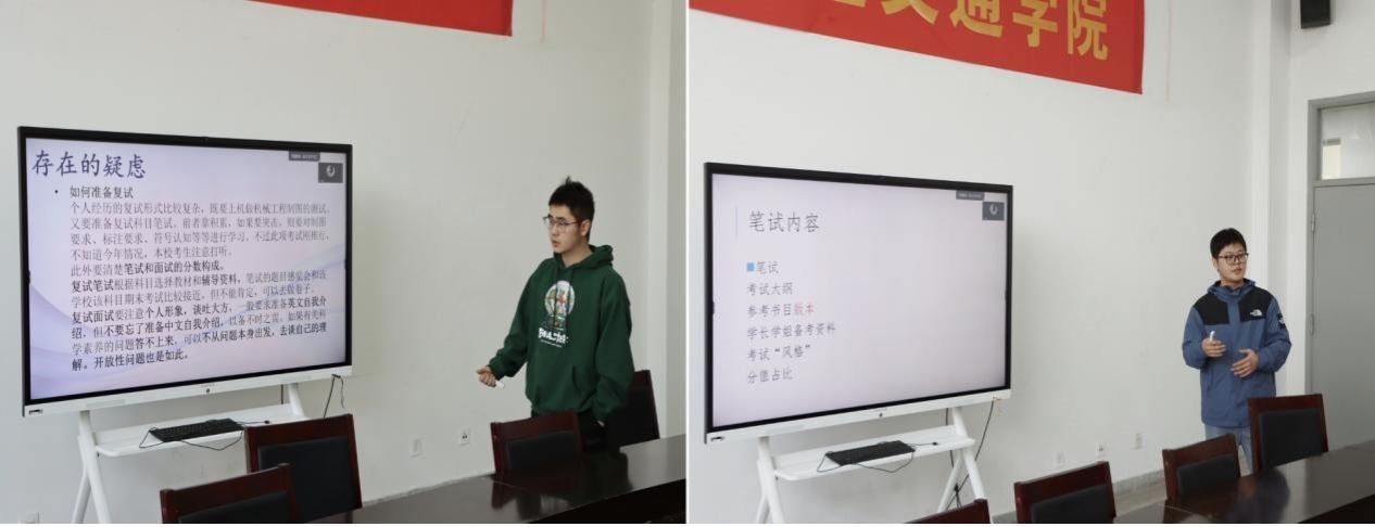 汽车与轨道交通学院始终高度重视毕业生升学工作,开展考研复试经验分享活动是学院推进“一流人才培养工程”的务实举措。学院将继续坚持党政领导、专业教师、辅导员与班主任全员参与,学生考研全过程服务的育人理念,为2024届毕业生就业工作推进做好服务保障。